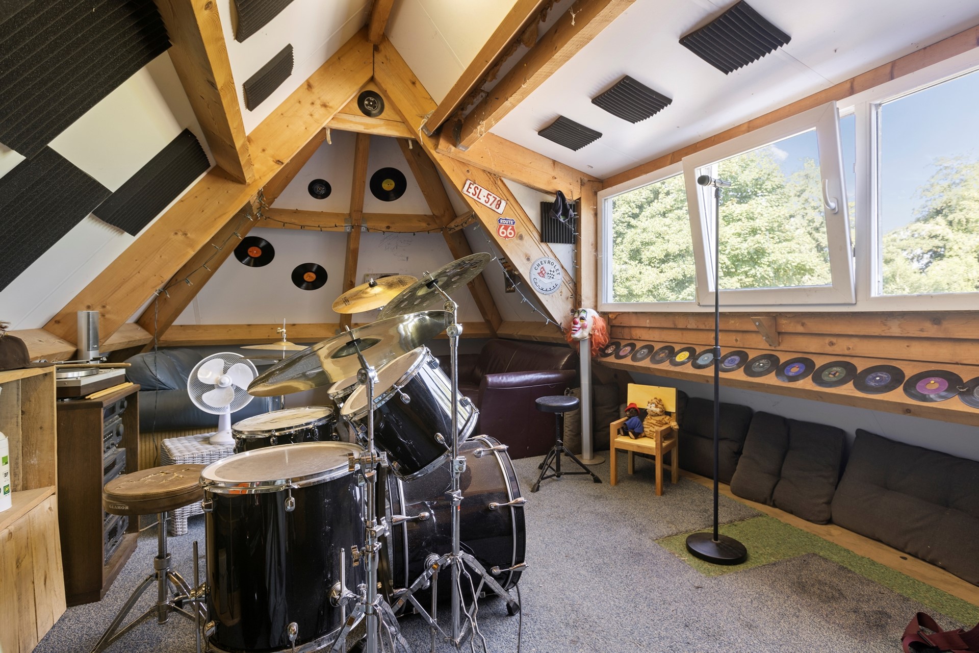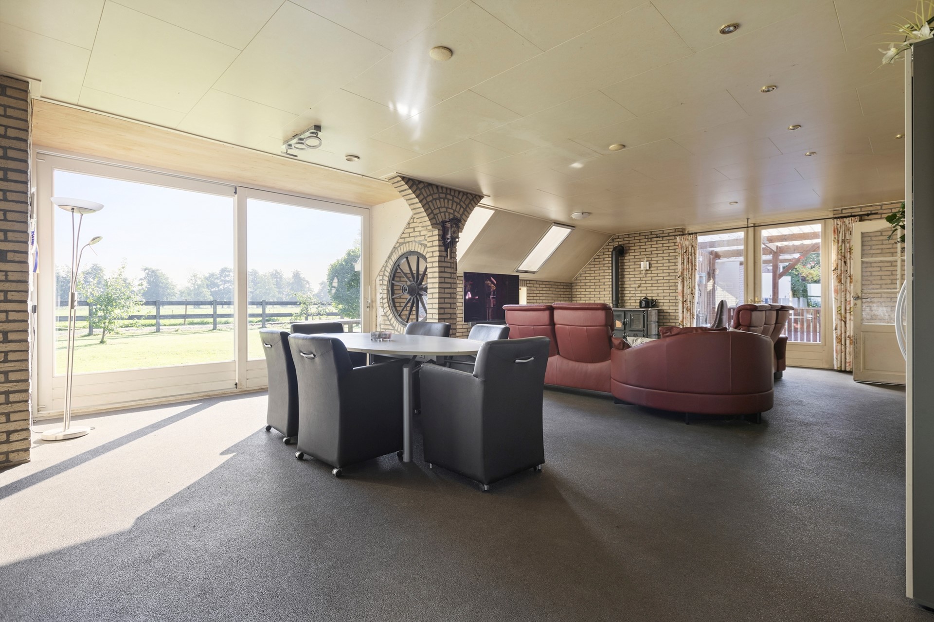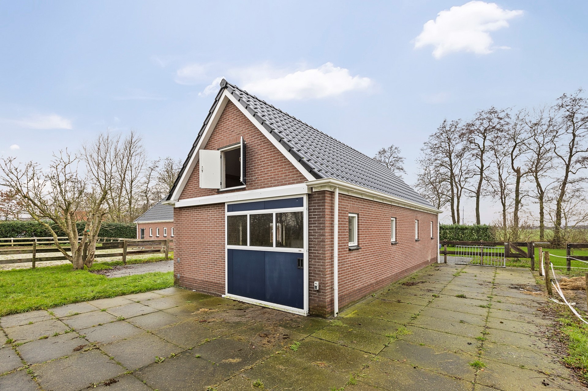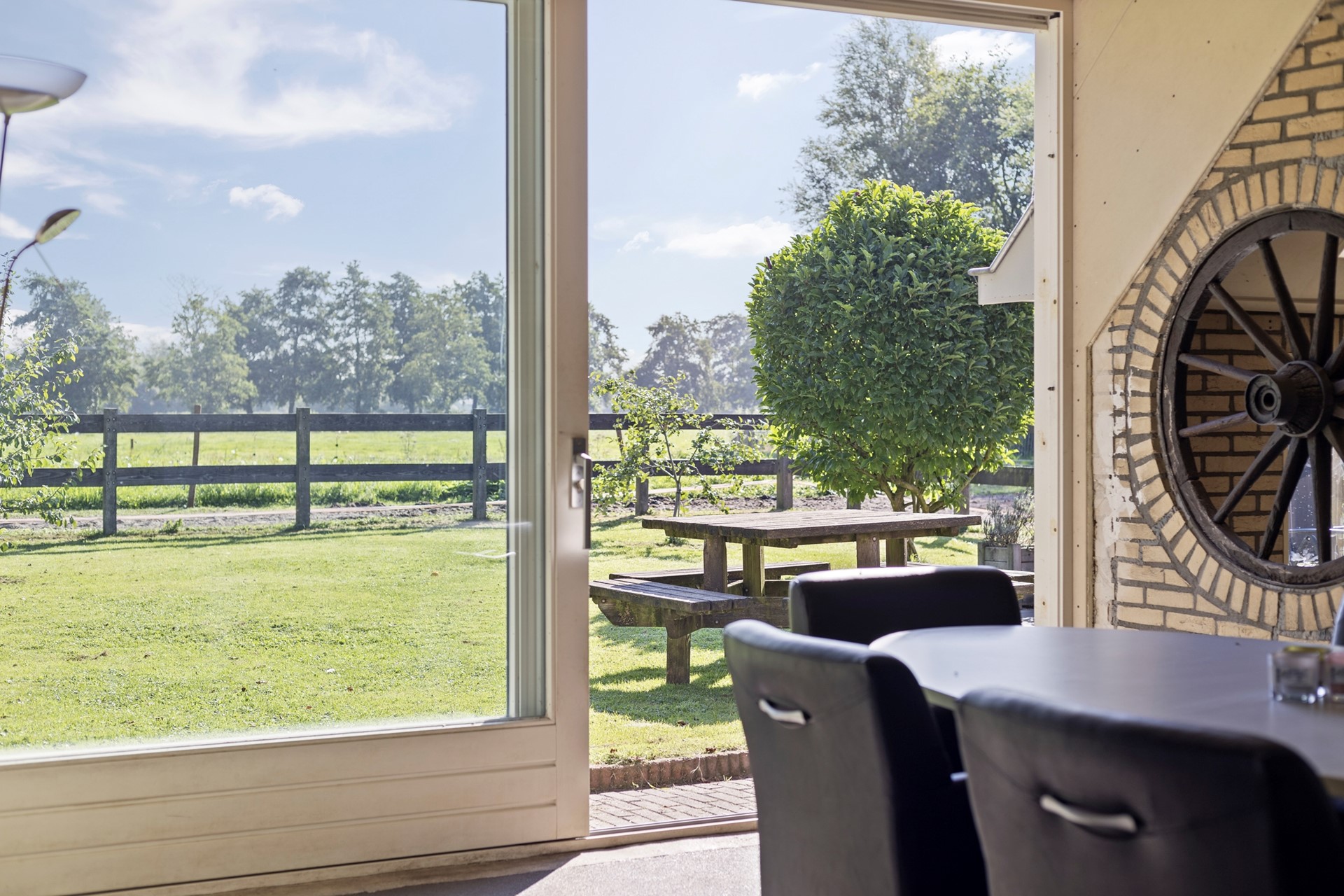 Zodra je aan komt rijden is het eerste wat je voelt: rust en ruimte! De ruime oprit op het terrein biedt parkeerplek voor meerdere auto's. Daarnaast is er ook een stenen dubbele garage waar je deze in kwijt kunt. Deze garage is volledig geïsoleerd, voorzien van een elektrische deur en heeft een verdieping met ruimte voor het uitoefenen van een hobby. Het terrein zelf bestaat uit grasland, diverse struiken en fruitbomen en een rijbak voor paardenliefhebbers! In de naastgelegen stenen schuur zijn drie paardenboxen gecreëerd. Hier kunnen ook de rijspullen worden opgeborgen. Er zijn diverse terrassen gecreëerd waar je met meerdere mensen buiten kunt zitten. Zo is er bij de woning een lichtdoorlatende overkapping waar je kunt genieten van het uitzicht. Zie jij jezelf hier al zitten?