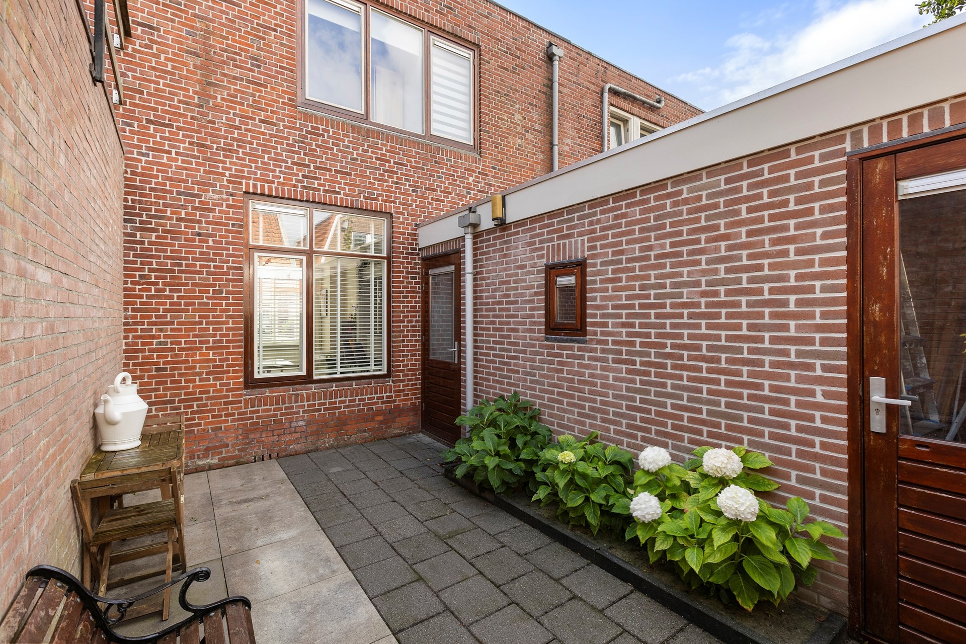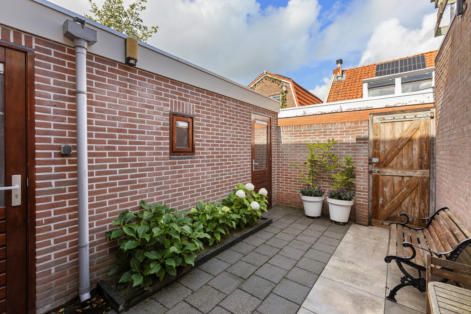 De knusse stadstuin achter de woning is te bereiken via de achtergelegen steeg en via de bijkeuken. Je fiets kun je parkeren in de stenen berging die achter de aanbouw is gelegen. Omdat de tuin volledig is omheind kun je hier heerlijk beschut genieten van een kopje koffie en een goed boek! Zie jij jezelf al zitten?