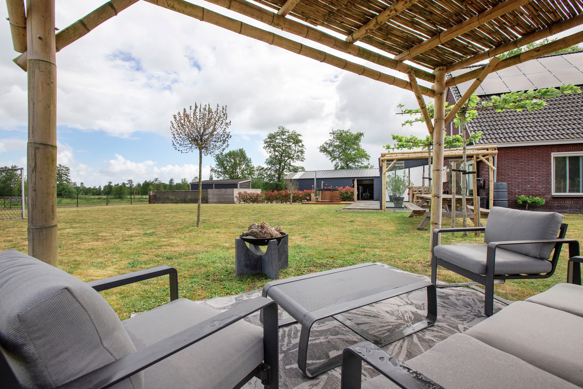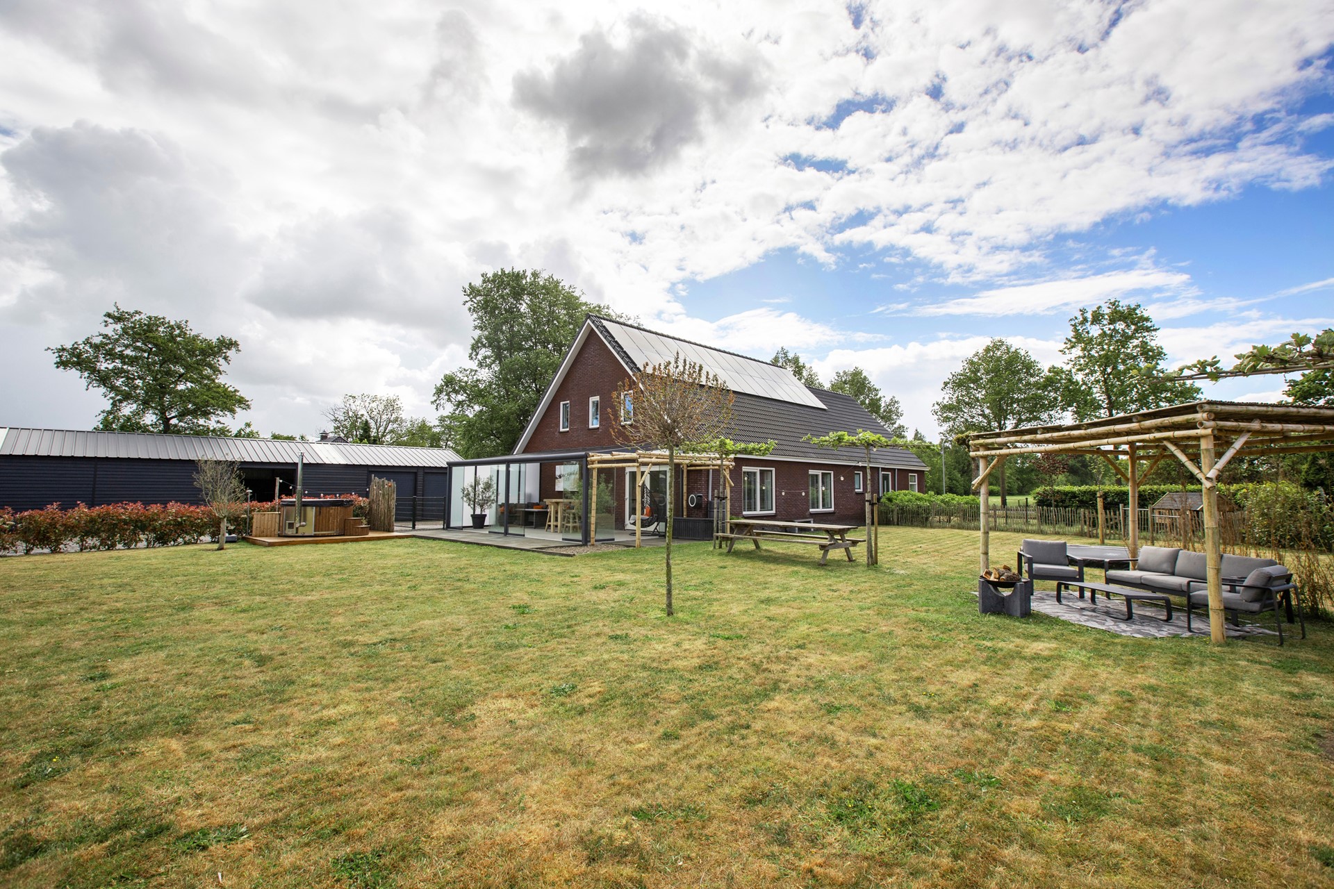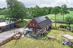 Paardenliefhebbers opgelet! Deze prachtige vrijstaande woonboerderij op een perceel van maar liefst 10.847 m² is voorzien van een gedraineerde verlichte rijbak en 'Paddock Paradise concept' met o.a. een track, wadi, grote inloopstal, een schuilstal, paddock, diverse speelbulten en veel groen met eetbare struiken en bomen. De woning zelf is modern en luxe afgewerkt en heeft een woonoppervlakte van 272 m², voorzien van kunststof kozijnen met HR++ glas en vloerverwarming op de gehele begane grond. Met een energielabel A+ (de woning is volledig gasloos) is deze niet alleen luxe, maar ook comfortabel en energiezuinig te noemen. Op beide verdiepingen is een moderne, luxe badkamer gecreëerd. In totaal zijn er vijf slaapkamers, waarvan één op de begane grond, waardoor de woning levensloopbestendig is. Bij de schitterende keuken is een serre gebouwd om optimaal te genieten van het vrije uitzicht. En wat dacht je van de vrijstaande (staal en houten) schuur?! Zie jij jezelf hier al wonen?