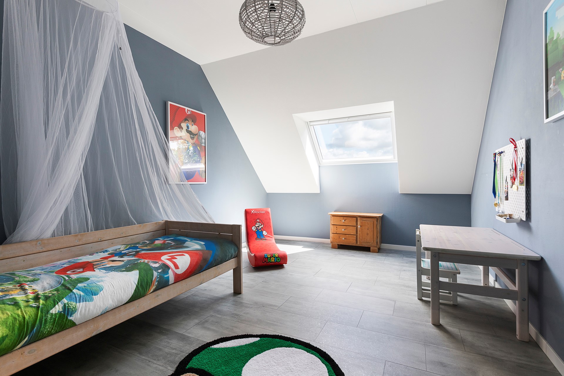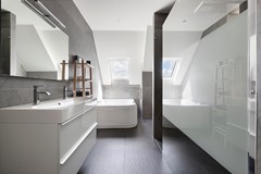 Via de overloop (met walk-in-closet en vide) zijn de vier zeer ruime slaapkamers te bereiken (ca. 13, 13, 13 en 23 m²) met veel natuurlijk lichtinval. Het geheel is zeer netjes afgewerkt met strak gestucte wanden. Ook is hier de moderne, luxe badkamer gerealiseerd met whirlpool bad, dubbele wastafel met meubel, ruime inloopdouche met twee aparte douchepanelen en hangend toilet. De badkamer is tevens voorzien van vloerverwarming.