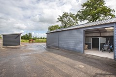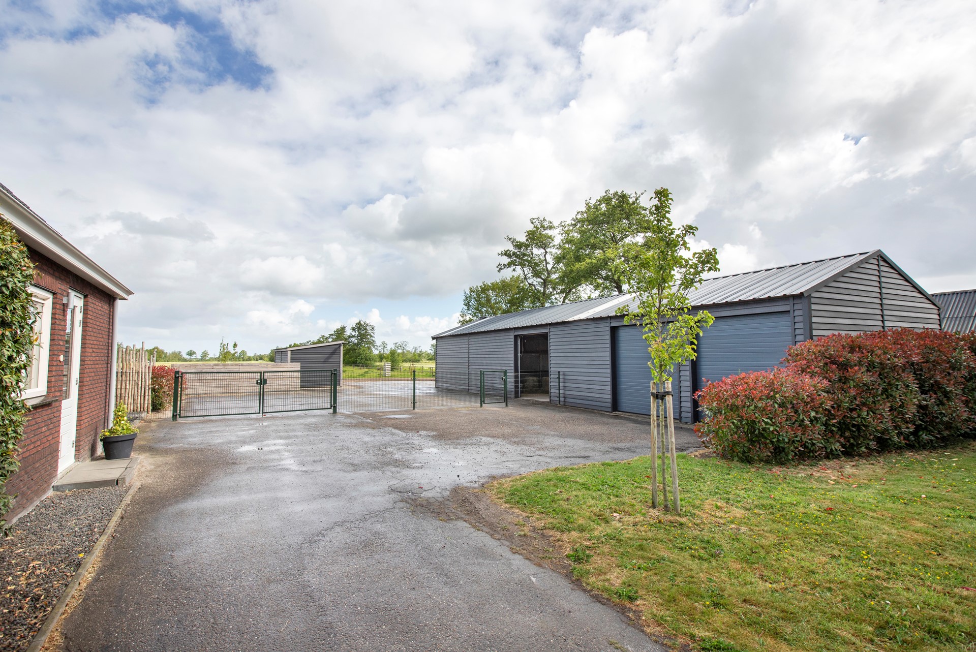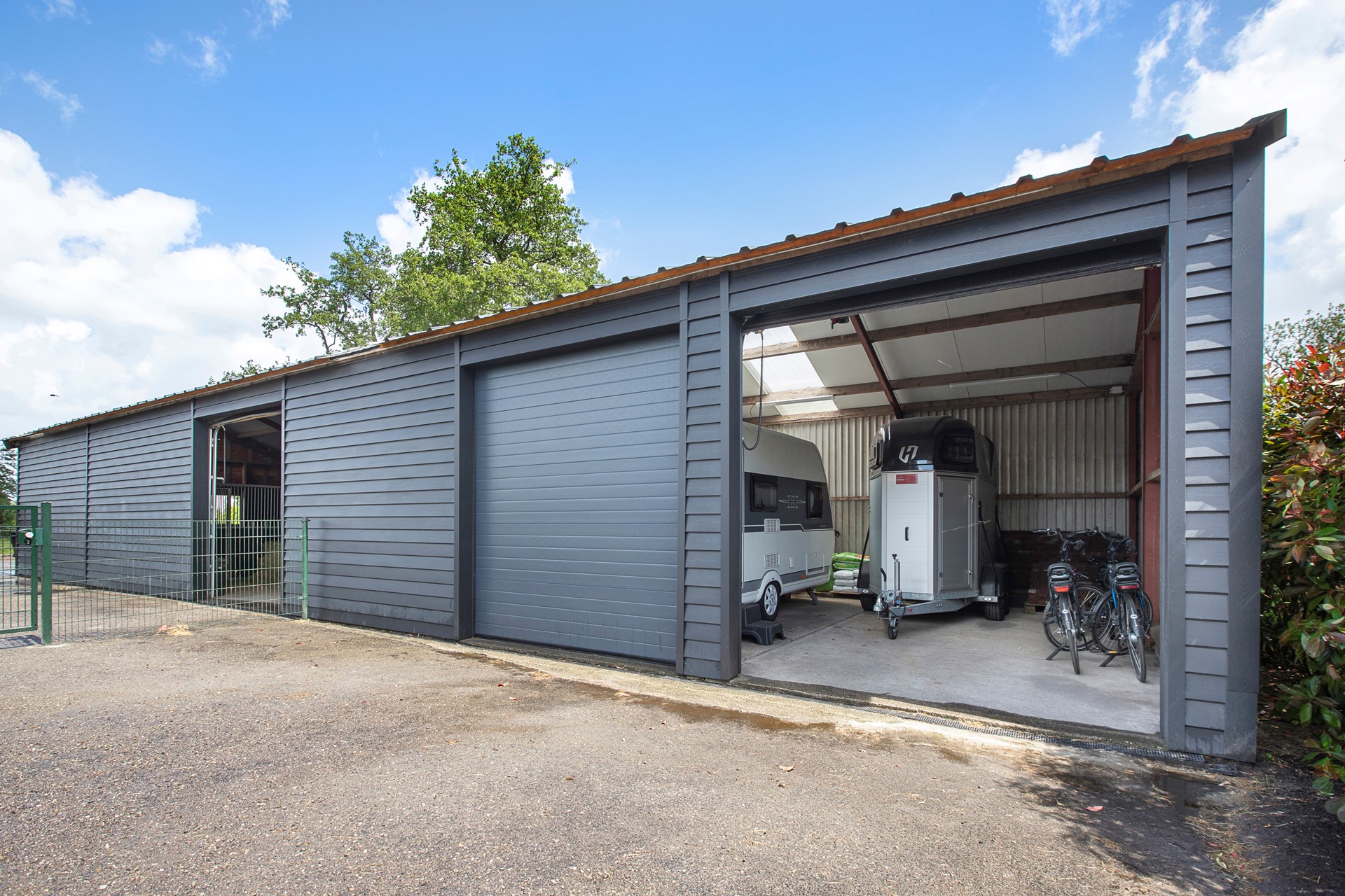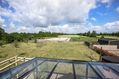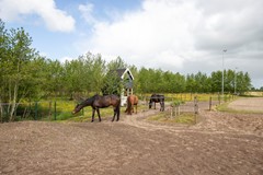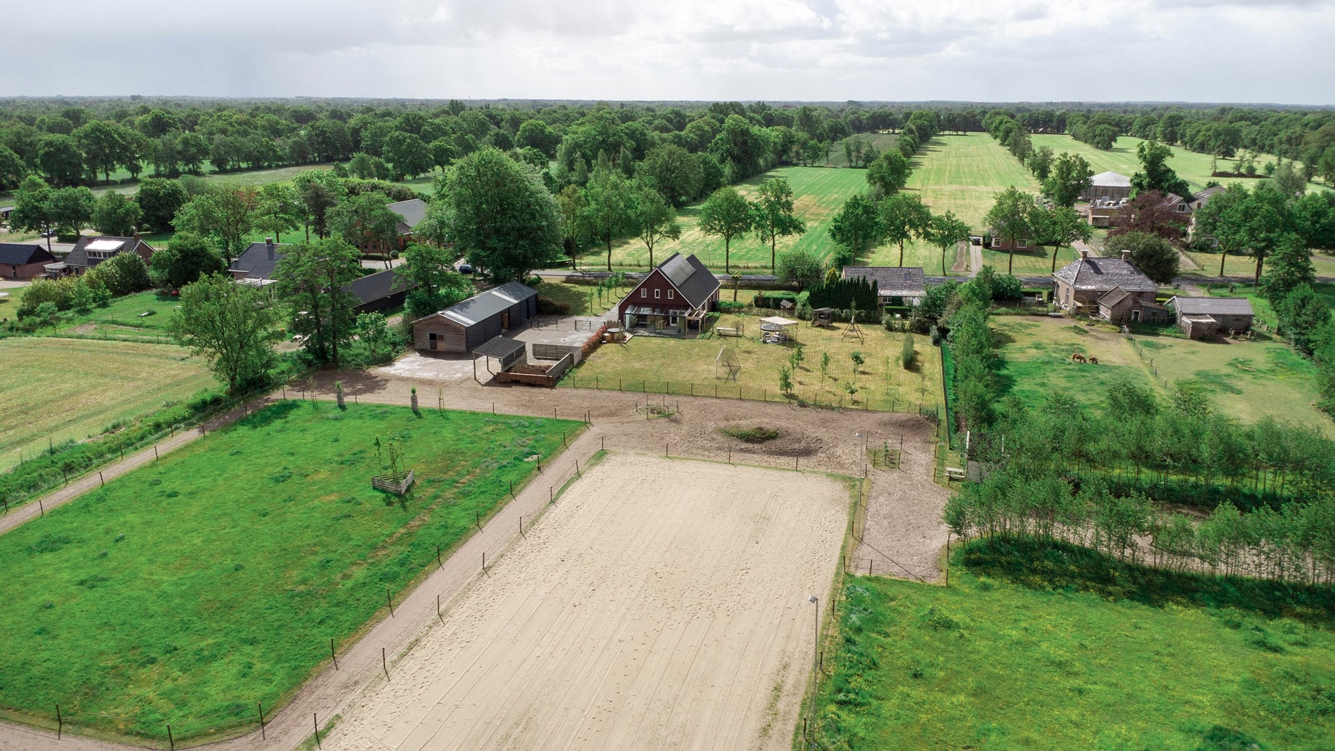 Voor paardenliefhebbers is dit perceel werkelijk uniek. Achter de verzorgde tuin bevindt zich een professioneel aangelegde, gedraineerde en verlichte rijbak, perfect voor dagelijkse training. Het geheel is aangevuld met een doordacht ingericht terrein volgens het Paddock Paradise-concept, waarbij de paarden 24/7 in vrijheid kunnen leven, inclusief een track voor variatie en beweging, een wadi, een ruime inloopstal en aparte schuilstal en een aparte box voor noodgevallen. Daarnaast zijn er speelbulten en diverse eetbare struiken en bomen.
