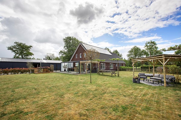 - Vrijstaand wonen met prachtig vrij uitzicht op een perceel van ruim 1 hectare! - De woning is luxe afgewerkt en heeft een woonoppervlakte van maar liefst 272 m². - Voorzien van een (luxe) badkamer op beide verdiepingen. - Levensloopbestendig met een extra (slaap)kamer op de begane grond. - Aangebouwde moderne serre. - Vrijstaande (staal en houten) schuur Paarden: - Paddock Paradise concept met paddock, track, wadi, speelbulten, een bosje en verschillende borders met eetbare struiken en bomen. - De paarden houden vrijheid, doordat ze 24/7 naar buiten kunnen. Er is een grote inloopstal, een schuilstal en een losse box voor noodgevallen. - Rijbak is gedraineerd en voorzien van verlichting (ca. 25 x 50 meter). Installaties: - Energielabel A+, de woning is volledig gasloos - Vloerverwarming gehele begane grond en badkamer boven. Deze kan ook koelen. - Warmtepomp, Ecodan, 2016, eigendom. - 300 liter boiler met buffervat voor de vloerverwarming. - Zonnepanelen, 26 stuks, 2017, eigendom. - Waterontharder.