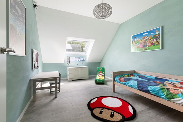 Via de overloop (met walk-in-closet en vide) zijn de vier zeer ruime slaapkamers te bereiken (ca. 13, 13, 13 en 23 m²) met veel natuurlijk lichtinval. Het geheel is zeer netjes afgewerkt met strak gestucte wanden. Ook is hier de moderne, luxe badkamer gerealiseerd met whirlpool bad, dubbele wastafel met meubel, ruime inloopdouche met twee aparte douchepanelen en hangend toilet. De badkamer is tevens voorzien van vloerverwarming.